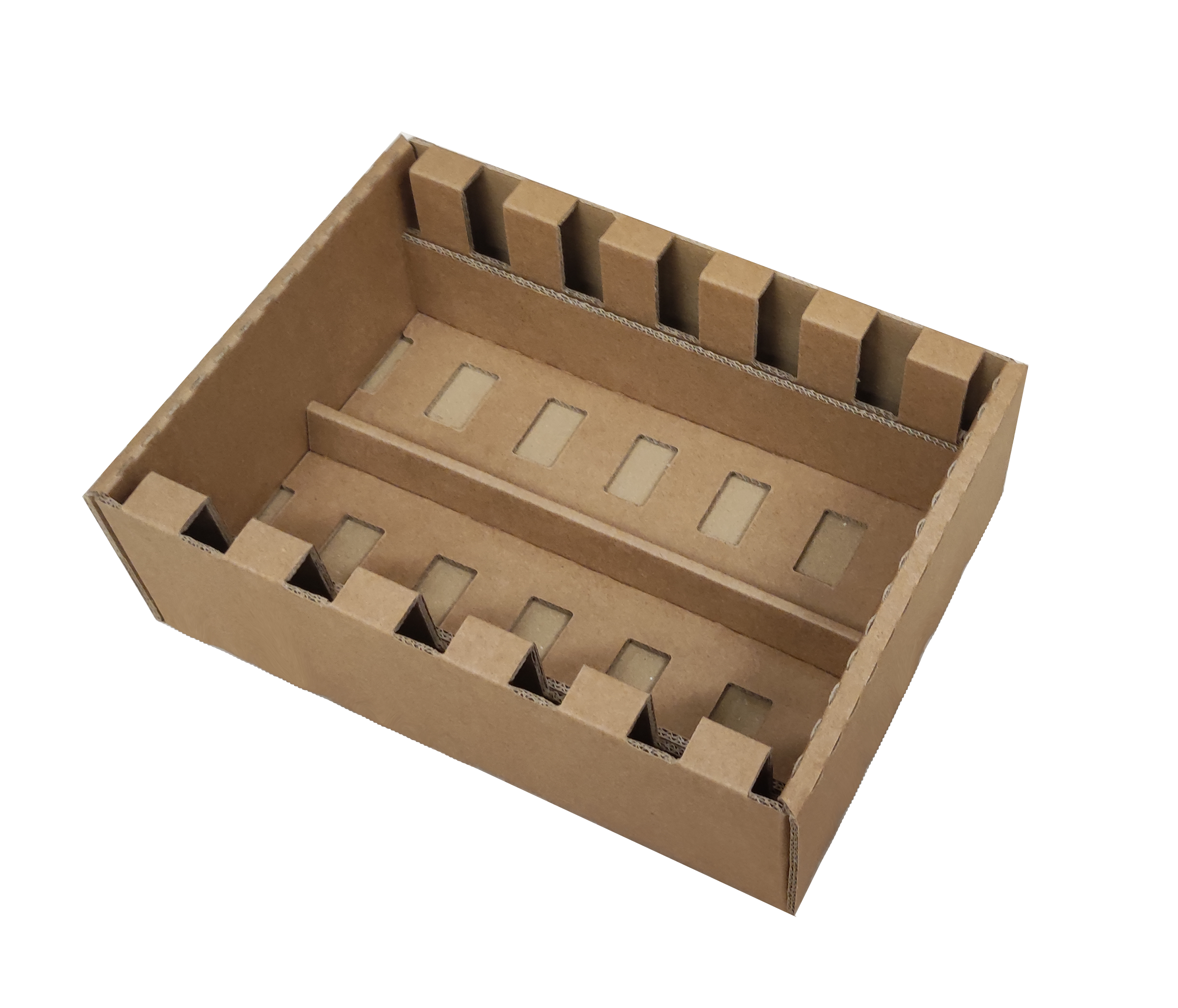 Cet emballage permet le transport de 6 pairs de plaquettes de freins, sans nuire à la lisibilité des codes-barres sur la partie inférieure des...
